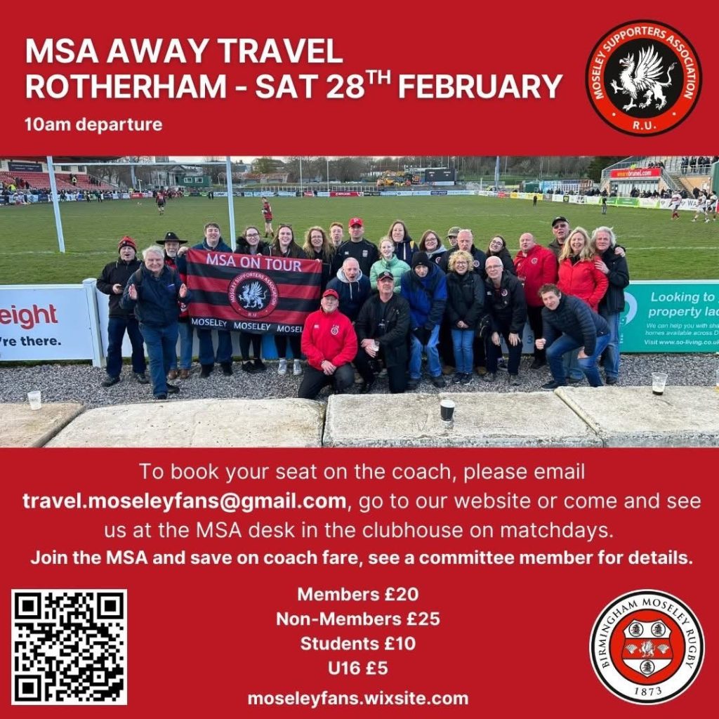 Birmingham Moseley Supporters Association announce the travel arrangements for our away game at Rotherham